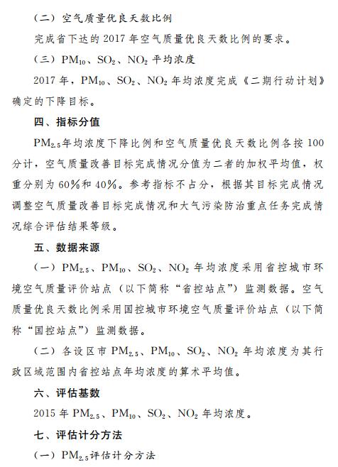 第二條本辦法適用于對(duì)我省各設(shè)區(qū)市人民政府(以下簡(jiǎn)稱“各市政府”)大氣污染防治目標(biāo)任務(wù)完成情況的評(píng)估。