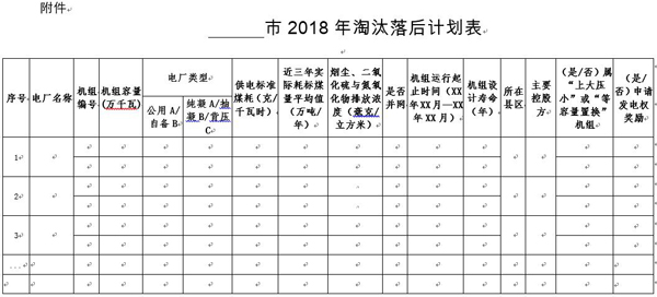 二、嚴(yán)格執(zhí)行國家及我省制定的煤電淘汰落后標(biāo)準(zhǔn),結(jié)合各市前期統(tǒng)計(jì)的“十三五”期間淘汰機(jī)組的摸底情況,對轄區(qū)內(nèi)煤電機(jī)組進(jìn)行嚴(yán)格篩查,根據(jù)篩查情況認(rèn)真填報(bào)《 ? ?市2018年淘汰落后計(jì)劃表》,報(bào)送計(jì)劃中要說明列入淘汰計(jì)劃機(jī)組是否申請發(fā)電權(quán)獎(jiǎng)勵(lì)。于2018年1月底前將本市2018年電力行業(yè)淘汰落后計(jì)劃以正式文件報(bào)省經(jīng)信委。