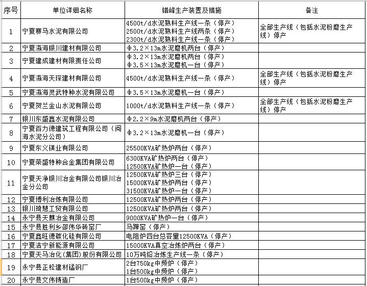 寧夏銀川市公布:2017-2017年度錯峰生產企業名單