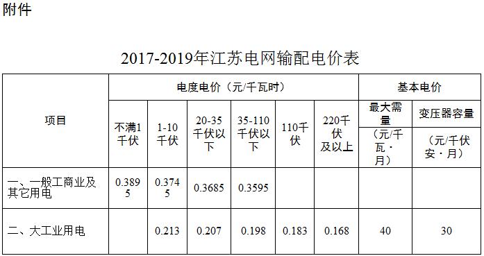 按照國家發展改革委輸配電價改革統一部署,現將江蘇電網2017-2019年輸配電價及有關事項通知如下: