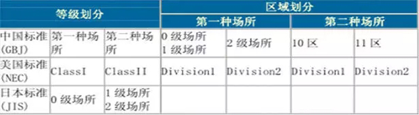 (1)在爆炸性氣體區域(0區、1區、2區)不同電氣設備使用安全級別的劃分。如旋轉電機選型分為隔爆型(代號d)、正壓型(p)、增安型(e)、無火花型(n)