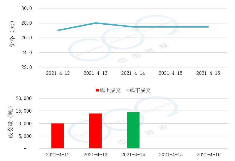 • 線上成交價最低為27.00元,最高為28.00元,平均碳價為27.50元。