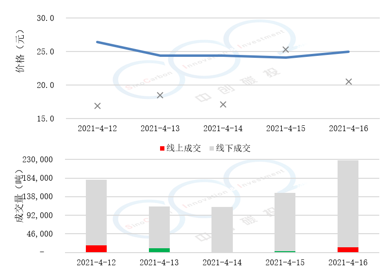 • 線上成交價最低為24.10元,最高為26.45元,平均碳價為24.87元。