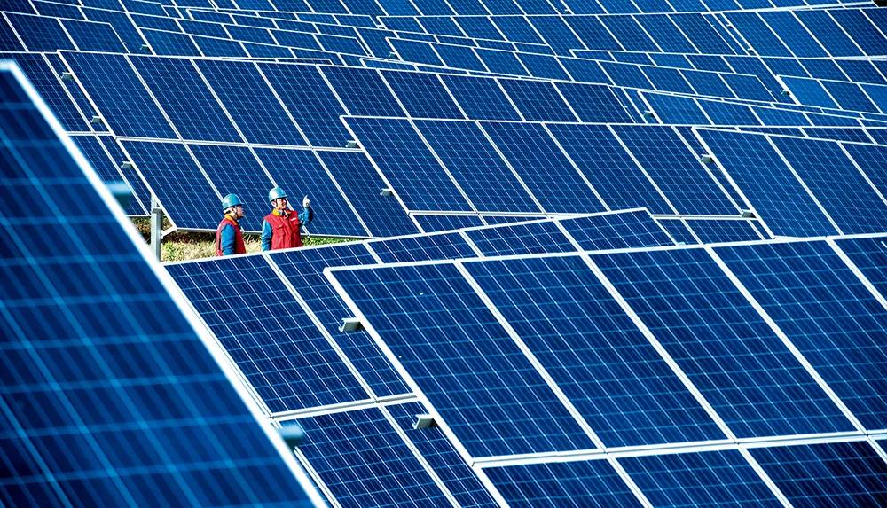 ▲ 4月28日,國網山東淄博供電公司技術人員巡檢光伏電站。遠德亮攝