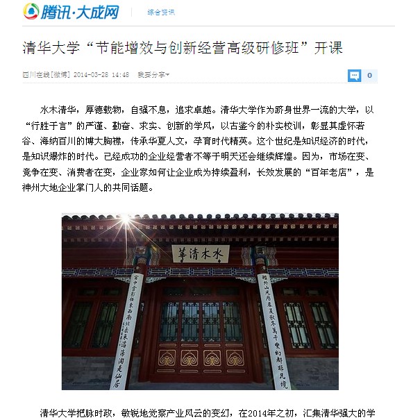 清華大學(xué)“節(jié)能增效與創(chuàng)新經(jīng)營(yíng)高級(jí)研修班”開課