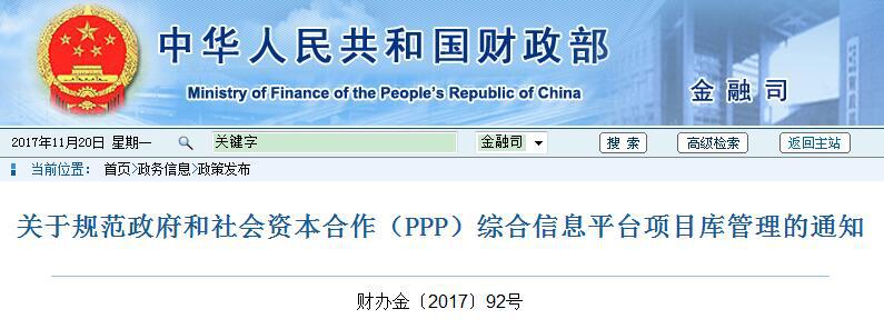 投資額達(dá)17.8萬億元的PPP項(xiàng)目庫管理進(jìn)一步從嚴(yán)規(guī)范。11月16日,財(cái)政 部公布《關(guān)于規(guī)范政府和社會(huì)資本合作(PPP)綜合信息平臺(tái)項(xiàng)目庫管理的通知》(以下簡(jiǎn)稱《通知》)。
